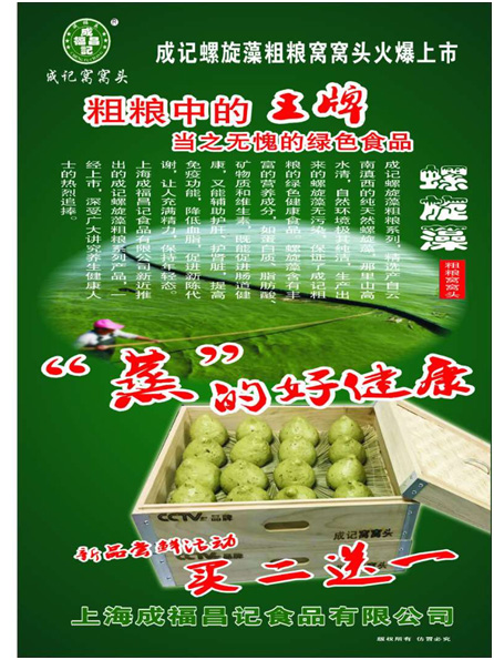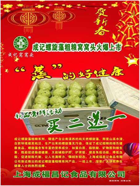 最近成记螺旋藻粗粮窝窝头火爆上市。成记螺旋藻粗粮系列一经上市,深受广大讲究养生健康人士的热烈追捧。