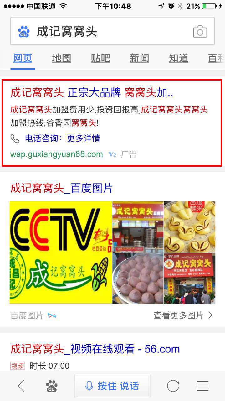 对于严重伪造抄袭成记窝窝头并对成记窝窝头的形象造成损害者,我们将追究其法律责任。冒用成记窝窝头招商广告如下: